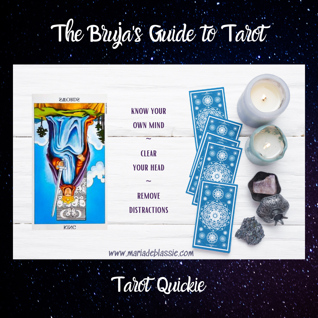 Sometimes this card, like its queenly counterpart, appears when you are being overly critical, bending facts to suit your purposes, or otherwise distorting your reading of a situation. This often happens when a complex is triggered or self-doubt sets in hard, which then makes it difficult to think clearly or see the world as it is. Find the source of the mental angst and the solution will follow.